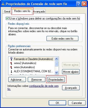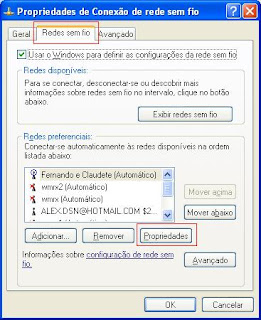 Na janela que irá abrir escolha a Aba °Redes sem Fio° e clique novamente em Propriedades.